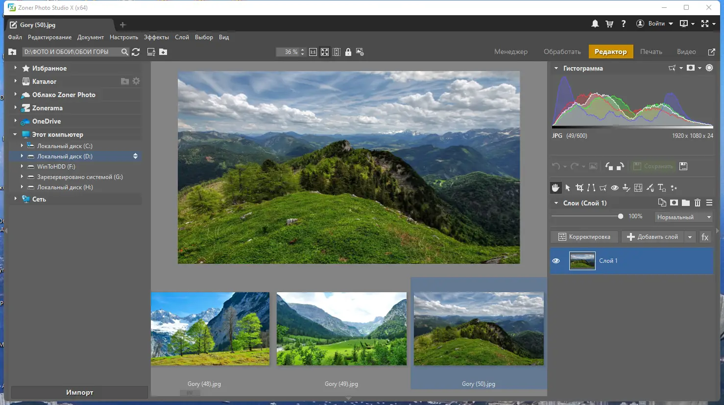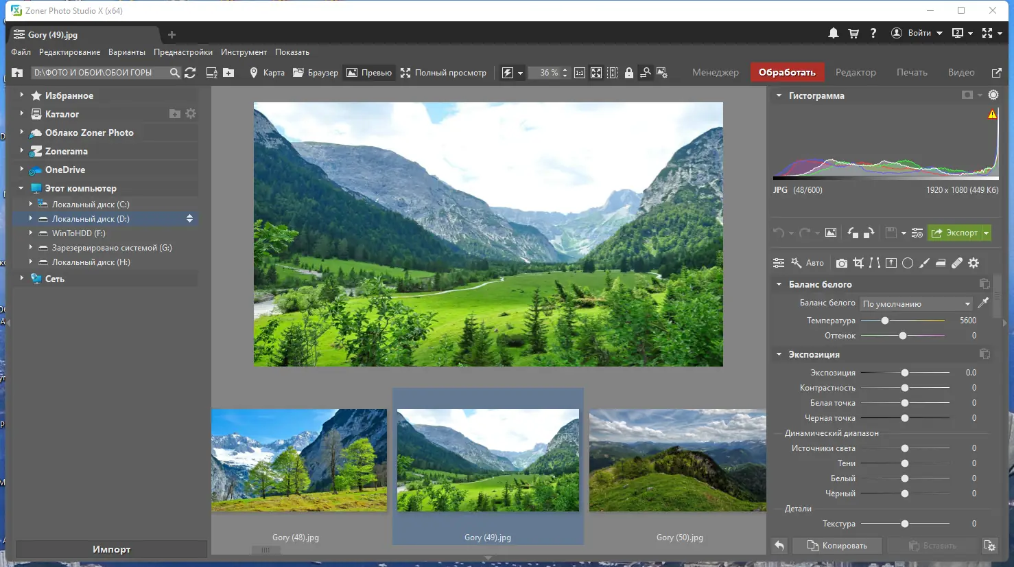 Работа с Zoner Photo Studio