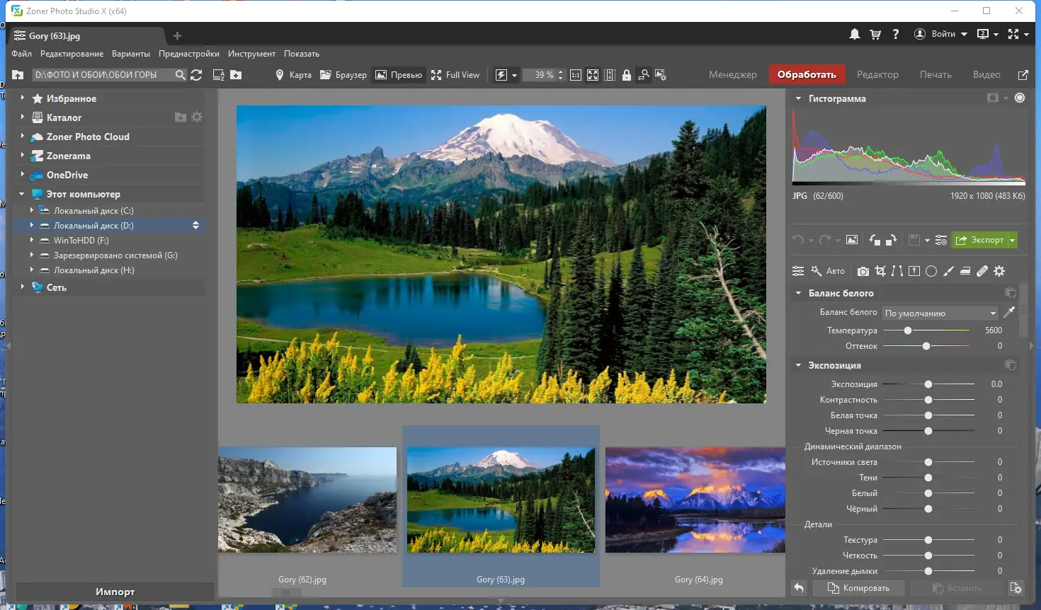 Zoner Photo Studio — это многофункциональный инструмент для обработки и управления цифровыми фотографиями, объединяющий в себе возможности просмотра, редактирования, сортировки и публикации изображений. Программа поддерживает широкий спектр форматов, включая RAW, и позволяет работать с файлами, полученными с различных фотоустройств. Особое внимание уделено интеграции с картографическими сервисами, что позволяет извлекать геоданные из EXIF и визуализировать их на карте.