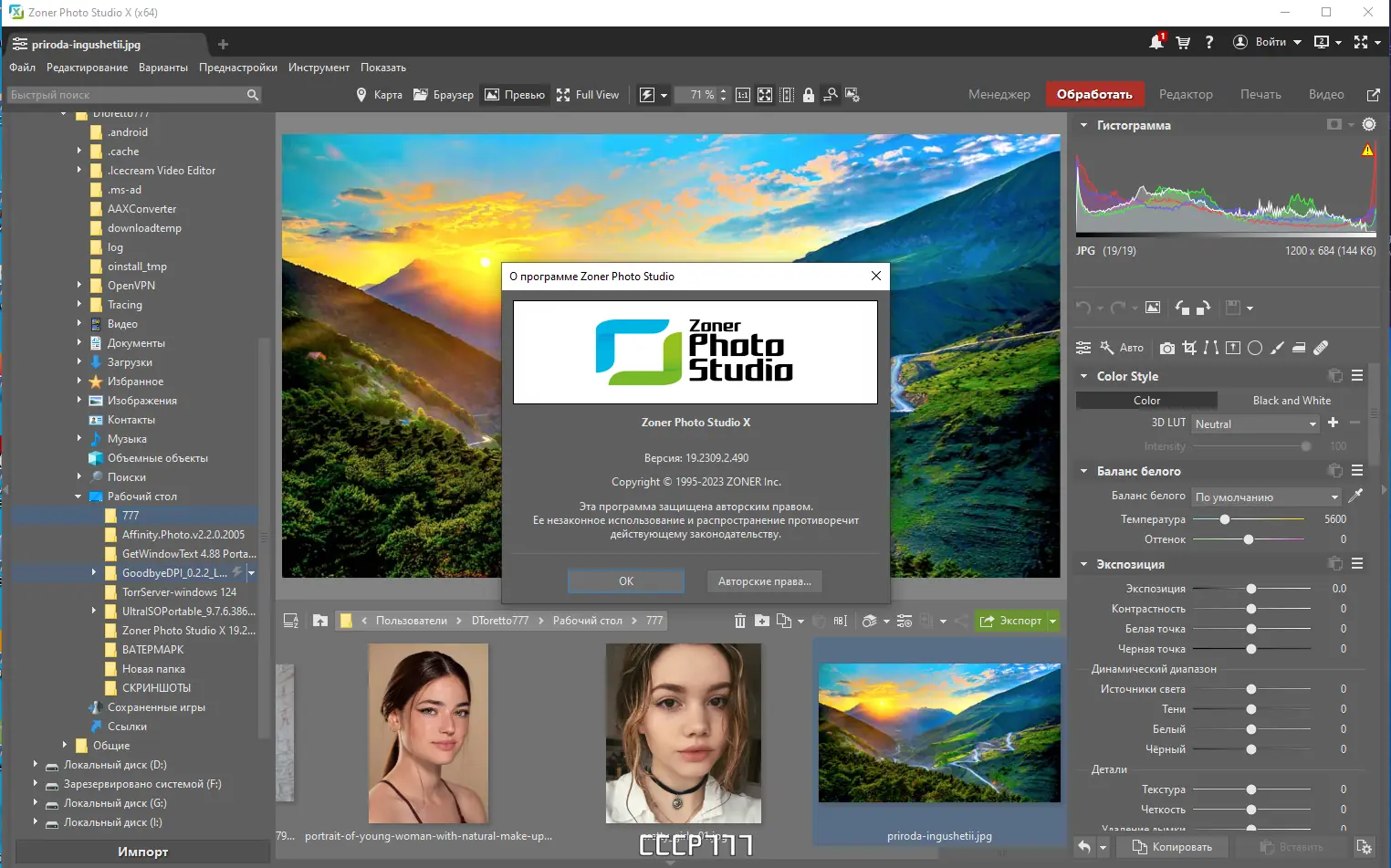 Zoner Photo Studio — многофункциональный инструмент для обработки, каталогизации и публикации цифровых фотографий, сочетающий в себе возможности редактора, менеджера изображений и графического конструктора. Программа поддерживает широкий спектр форматов, включая RAW, и предлагает продвинутые инструменты для цветокоррекции, ретуши и автоматической архивации снимков. Благодаря интеграции с картографическими сервисами, пользователь может легко отслеживать геолокацию каждого фото.