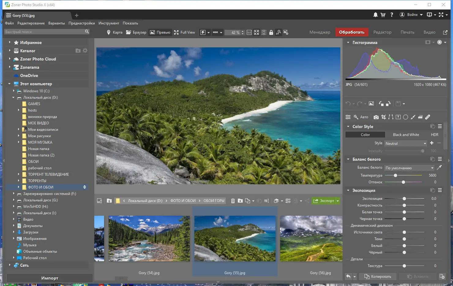 Работа с Zoner Photo Studio