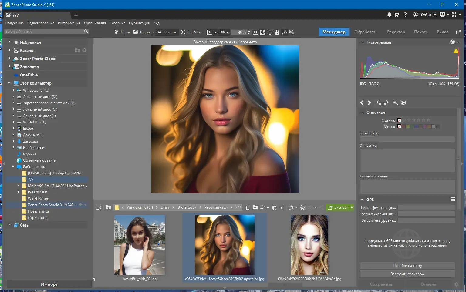 Zoner Photo Studio — это многофункциональный инструмент для обработки и просмотра цифровых фотографий, объединяющий в себе возможности редактора, архиватора и публикатора изображений. Программа поддерживает широкий спектр форматов, включая RAW, и позволяет работать с метаданными, в том числе извлекать геолокацию снимков. Пользователи получают полный контроль над изображениями — от первоначального импорта до публикации в интернете.