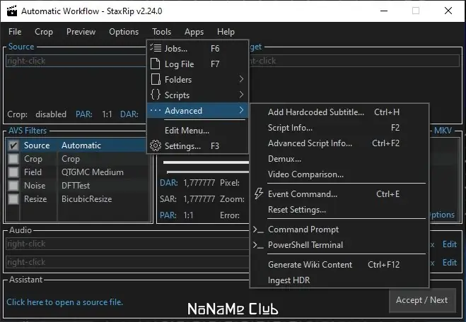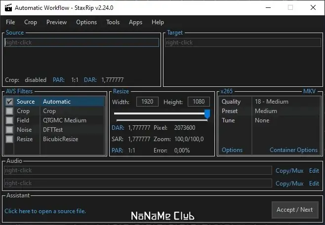 StaxRip — это мощный инструмент для кодирования видео, объединяющий широкие возможности обработки в одном приложении. Программа поддерживает преобразование различных источников, включая Blu-ray, DVD и DVB, в современные форматы, такие как H.264, H.265, VP9 и другие, обеспечивая высокое качество результата и гибкость настройки.