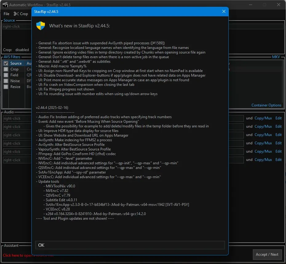 StaxRip сочетает в себе простоту интерфейса и глубину настройки, что делает его универсальным решением для преобразования видео.