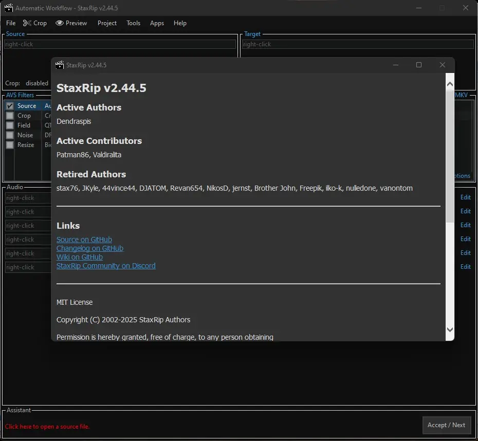 StaxRip представляет собой многофункциональное программное обеспечение, предназначенное для перекодирования видео из различных источников, включая диски Blu-ray, DVD и цифровые видеозаписи. Оно позволяет преобразовывать контент в популярные форматы, такие как MP4, MKV, AVI и WEBM, с использованием современных кодеков, включая H.264, H.265, VP9 и другие. Программа интегрирует передовые технологии обработки изображения и звука, обеспечивая гибкость и высокую производительность.