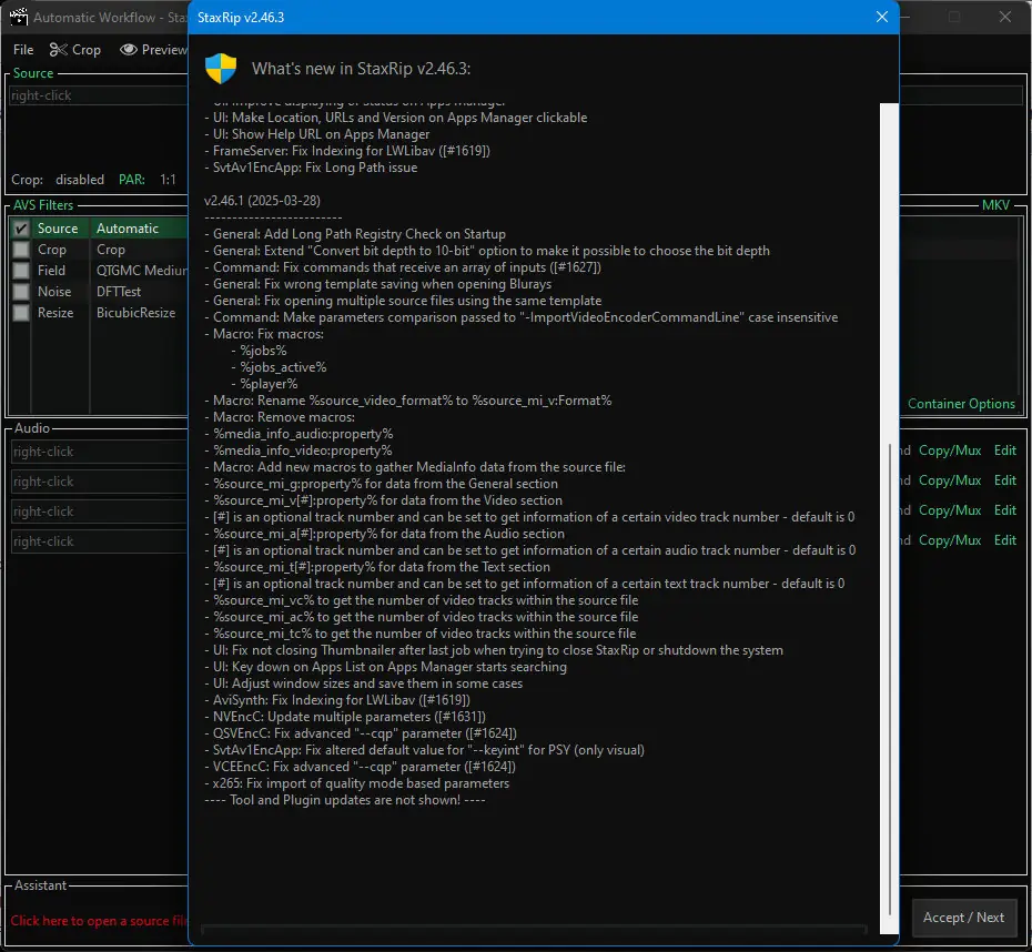 StaxRip сочетает в себе функциональность профессионального инструмента и простоту использования, что делает его одним из лучших решений для перекодирования видео.