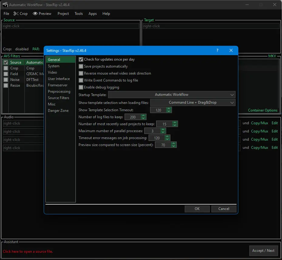 Работа с программой начинается с добавления исходного файла, после чего пользователь может выбрать подходящий профиль кодирования или настроить параметры вручную. Интерфейс организован логично: каждый этап обработки — от выбора видео- и аудиопотоков до финальной компрессии — представлен в виде отдельного шага. Благодаря встроенной справке и интуитивной структуре, разобраться, как пользоваться StaxRip, можно уже на первых сеансах работы.
