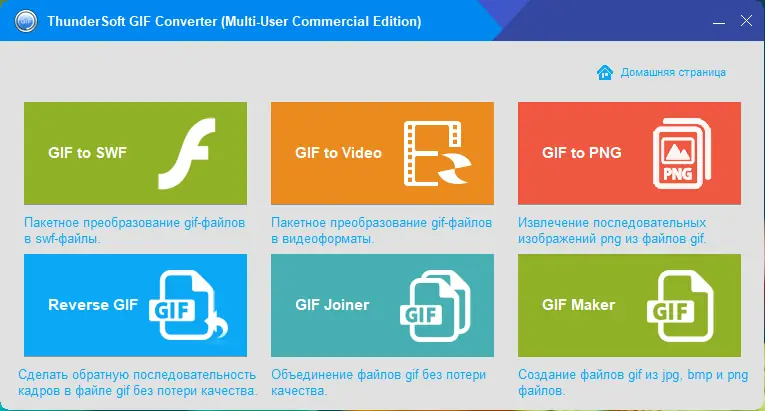 ThunderSoft GIF Converter — это универсальный инструмент для работы с анимированными изображениями, объединяющий шесть функций в одном приложении. Программа обеспечивает конвертацию GIF в различные форматы, включая видео, SWF и PNG, а также позволяет создавать, объединять и редактировать анимации без потери качества. Поддержка пакетной обработки делает процесс преобразования быстрым и удобным, подходит как для новичков, так и для опытных пользователей.