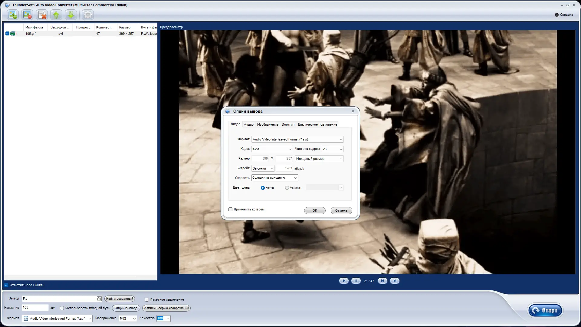ThunderSoft GIF to Video Converter предназначена для преобразования анимированных изображений в полноценные видеоролики. Она поддерживает не только GIF, но и другие форматы растровой графики, такие как PNG, JPEG и BMP, что расширяет сферу её применения. Программа позволяет обрабатывать несколько файлов одновременно, что особенно полезно при работе с большими коллекциями анимаций. Конвертация происходит с сохранением качества и плавности движения, а также даёт возможность тонкой настройки итогового результата.