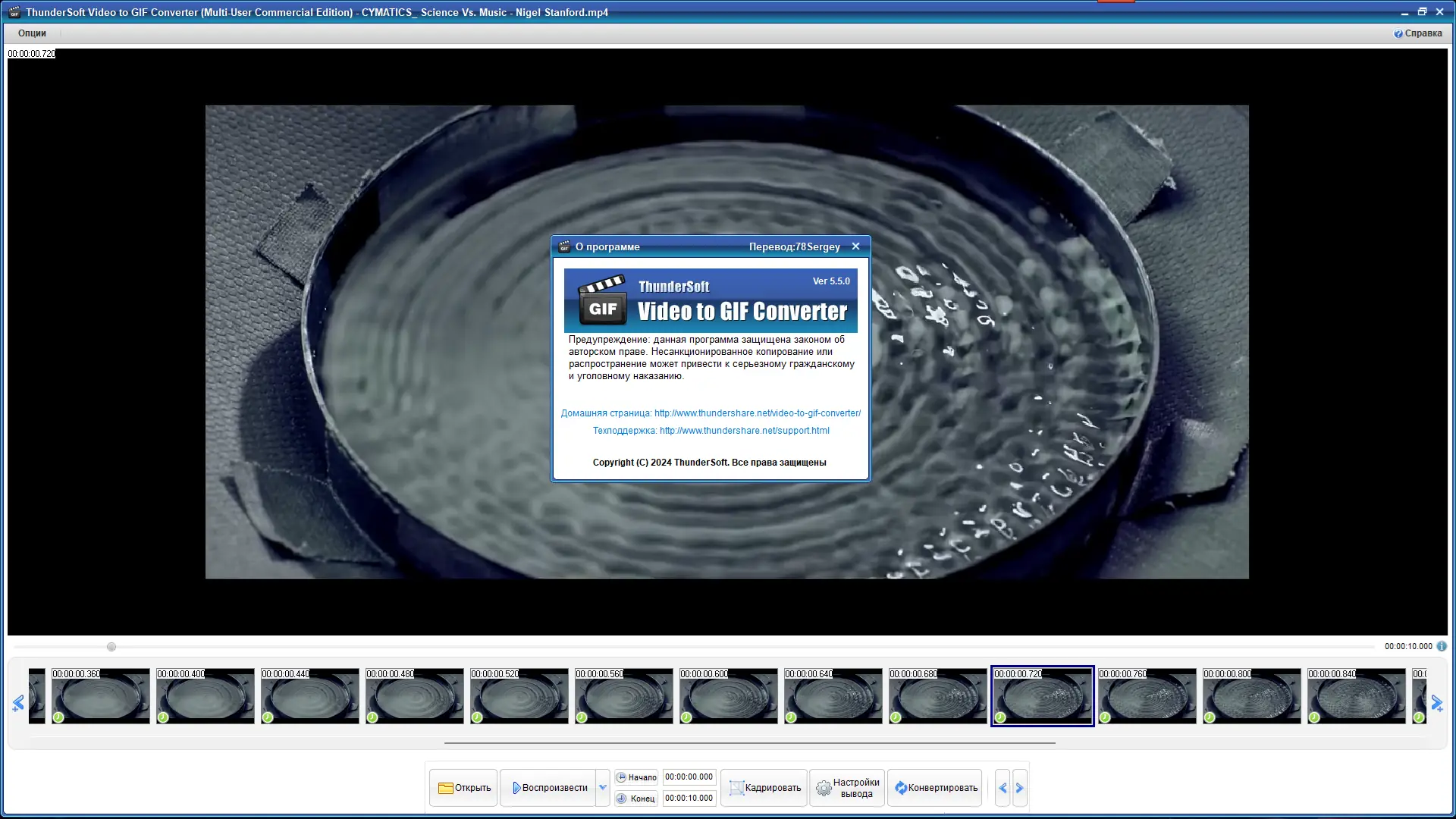 ThunderSoft Video to GIF Converter представляет собой специализированный редактор, ориентированный на конвертацию видео в формат GIF без потери качества. Программа обеспечивает детальный контроль над процессом преобразования, позволяя пользователю просматривать видео по кадрам, выделять нужный фрагмент и настраивать параметры анимации. Интерфейс интуитивно понятен, а функционал охватывает все основные задачи, связанные с созданием мини-анимации.