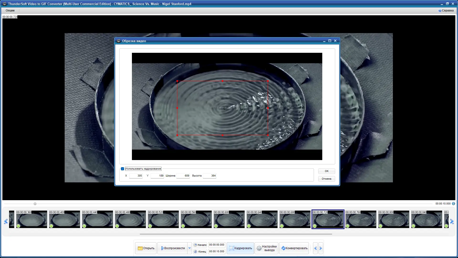 - Предварительный просмотр как исходного видео, так и готового GIF-файла