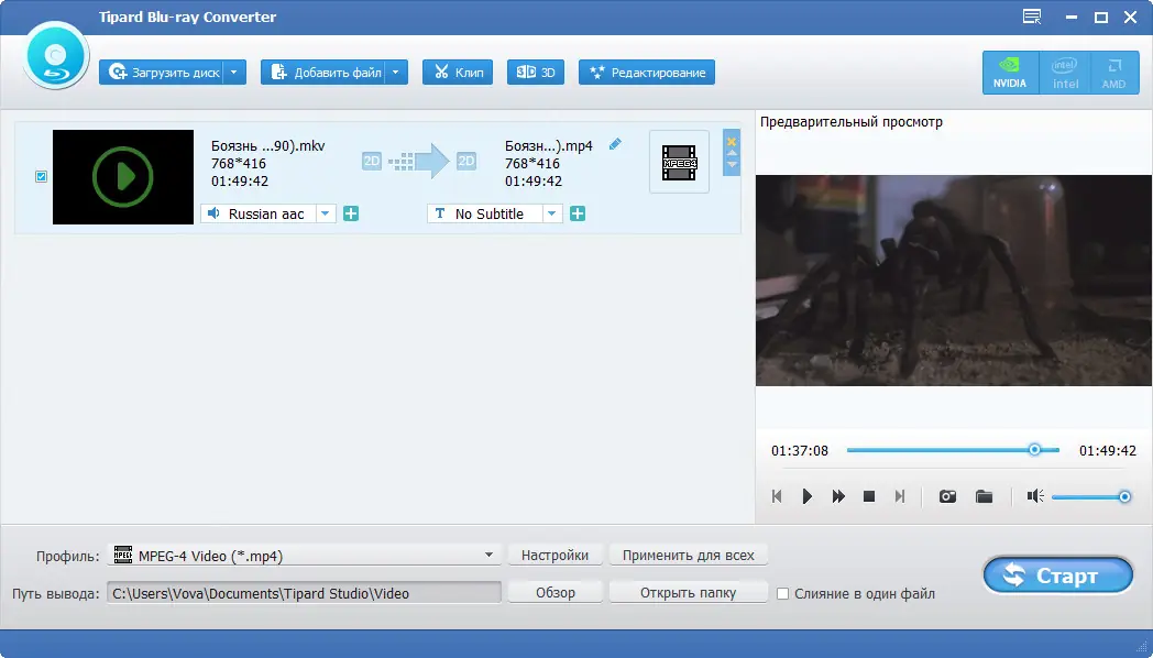 Работа с Tipard Blu-ray Converter