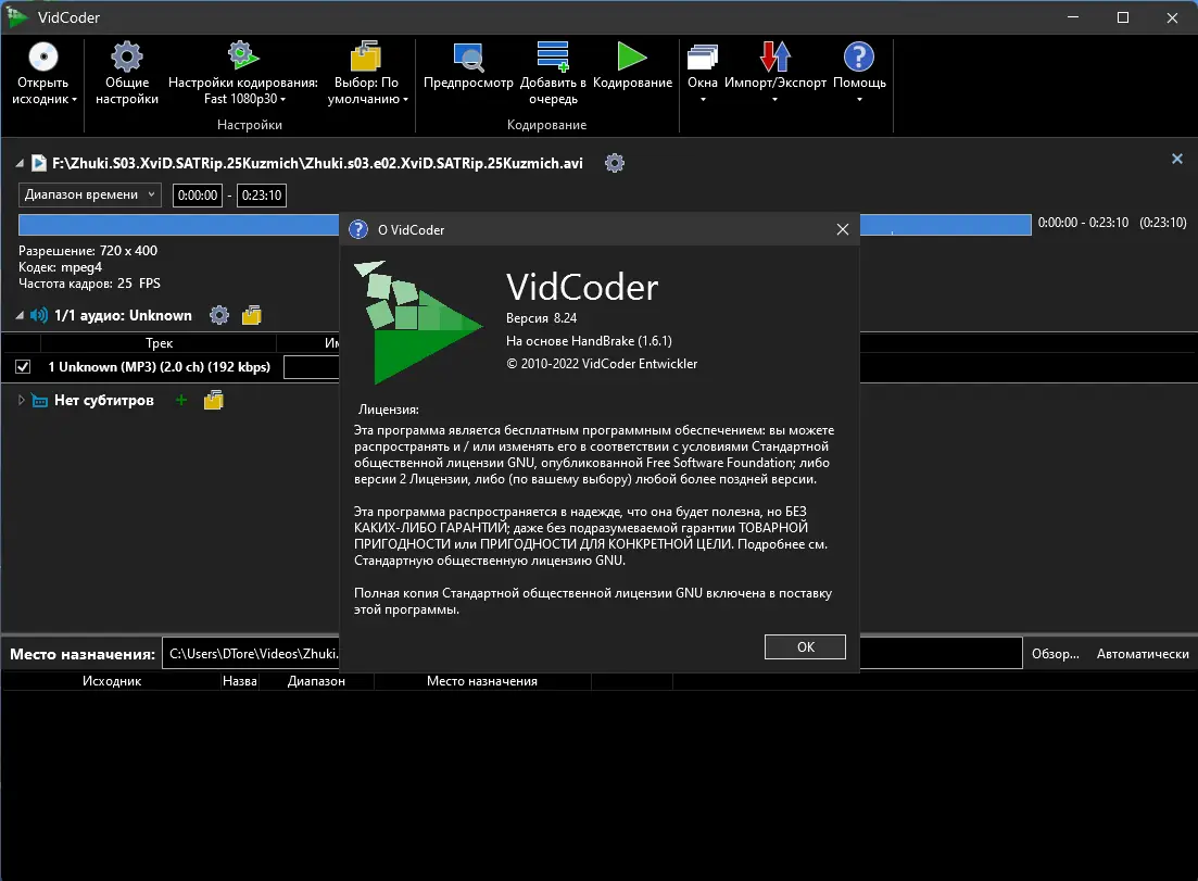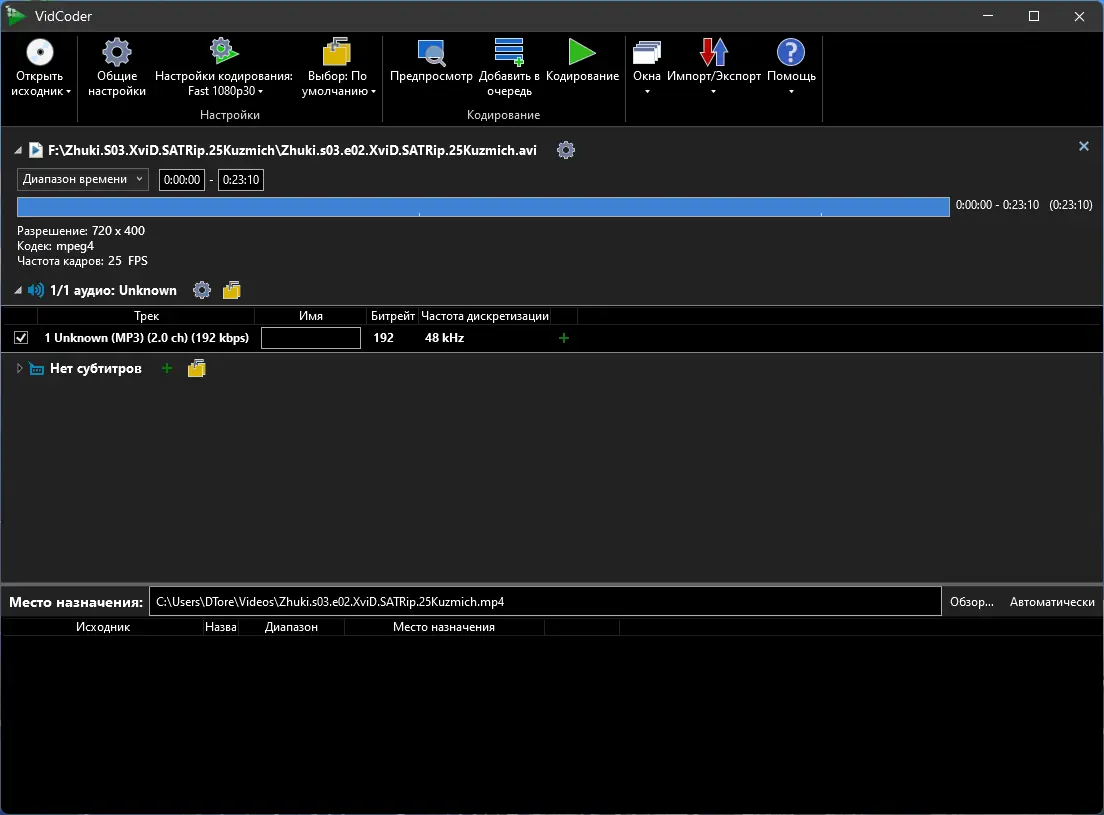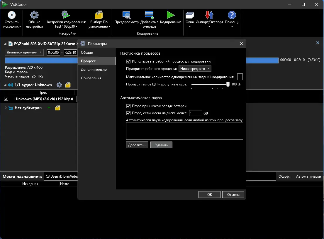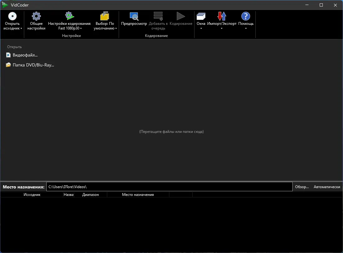 Работа с VidCoder