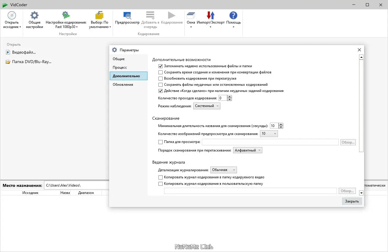 - Гибкие настройки кодирования, включая выбор кодеков, битрейта и разрешения.