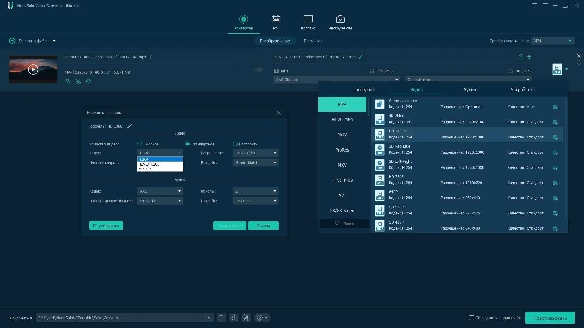 - Быстрая конвертация с использованием GPU, что значительно сокращает время обработки.