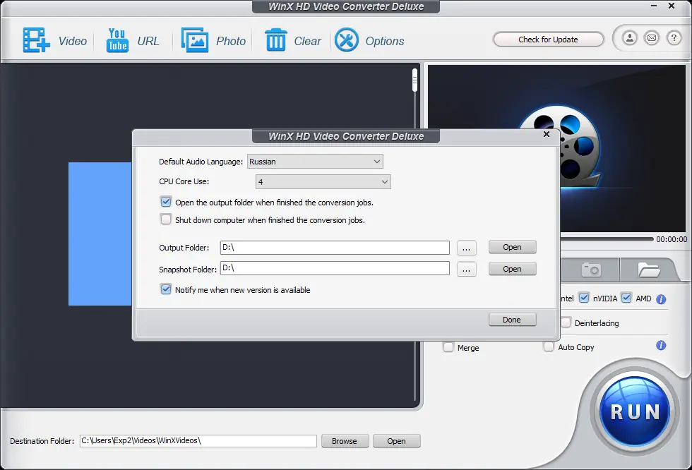 WinX HD Video Converter Deluxe — это мощный инструмент для преобразования, редактирования и загрузки видео в высоком качестве. Программа поддерживает форматы HD и 4K, обеспечивая быструю обработку с использованием GPU-ускорения, и предлагает широкий набор функций для комфортной работы с медиафайлами.