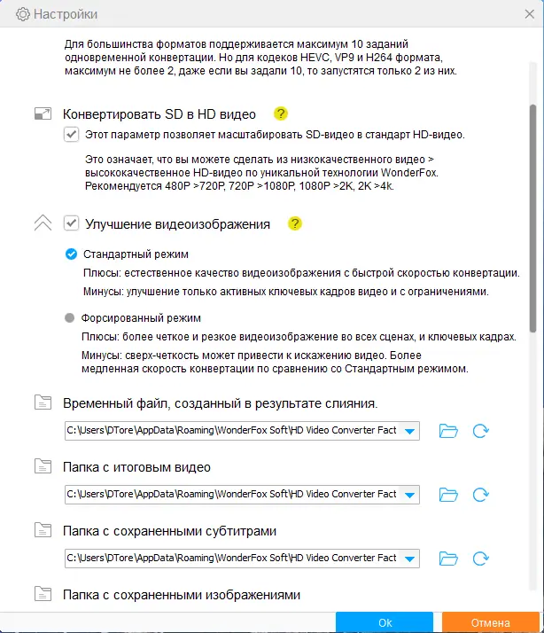 WonderFox HD Video Converter Factory — это многофункциональное приложение, предназначенное для конвертации, редактирования и оптимизации видеофайлов. Программа поддерживает широкий спектр форматов, включая M2TS, MKV, AVCHD, HDTV BDAV и MPEG-TS, что делает её подходящей для работы с высококачественным контентом. Благодаря встроенным алгоритмам кодирования, особенно с поддержкой H265 (HEVC) и VP9, пользователи могут значительно уменьшать размер видео без заметной потери детализации. Это особенно полезно при подготовке файлов для мобильных устройств или при нехватке дискового пространства.