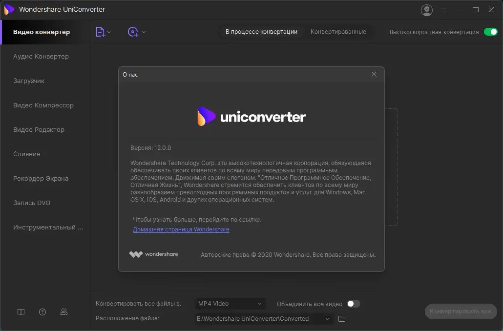Wondershare UniConverter — это многофункциональный инструмент для работы с видеоконтентом, объединяющий в себе возможности конвертера, редактора, рекордера и загрузчика. Он поддерживает обработку видео в форматах 4K и 8K, включая кодеки HEVC/H.265, что позволяет сохранять высокое качество при минимальном размере файла. Программа также позволяет записывать диски Blu-ray и DVD, а также передавать файлы на мобильные устройства по Wi-Fi без использования кабелей.