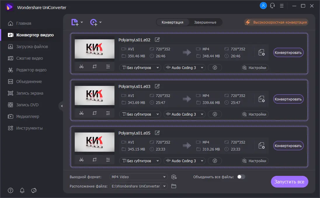 Работа с Wondershare UniConverter