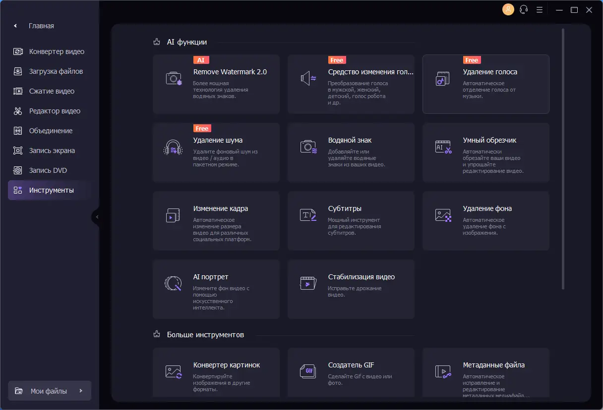 - Конвертация видео в более чем 1000 форматов с использованием аппаратного ускорения
