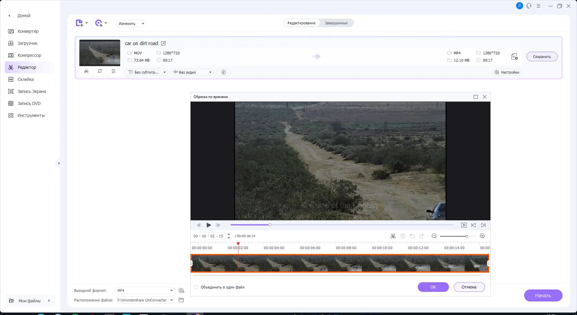 - Функции редактирования: обрезка, объединение, настройка цвета, добавление субтитров и водяных знаков