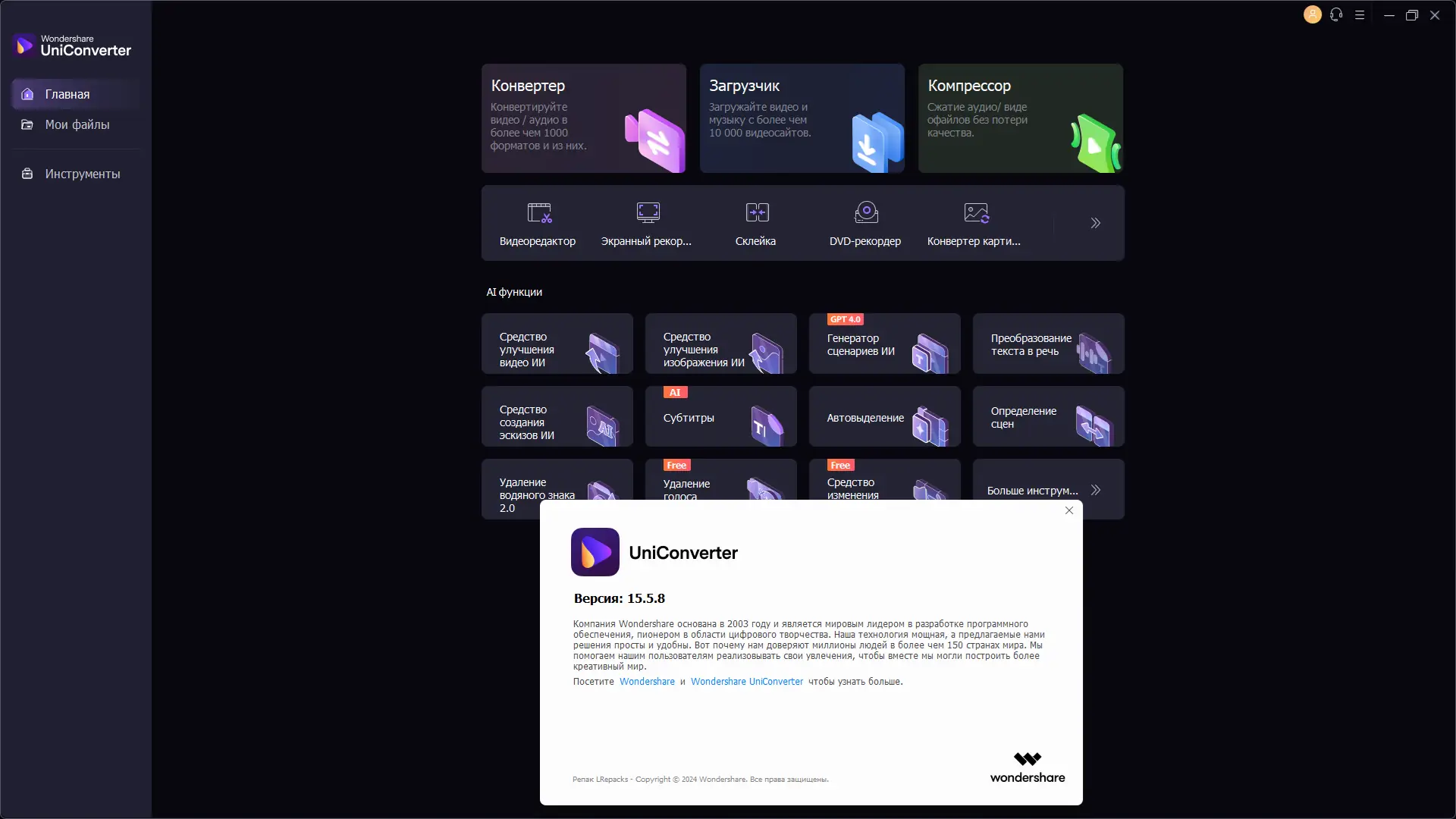 Wondershare UniConverter сочетает в себе производительность, функциональность и простоту использования. Он поддерживает широкий спектр задач — от базовой конвертации до сложного монтажа и создания дисков. Наличие AI-инструментов значительно расширяет возможности постобработки, а встроенные опции для загрузки и передачи данных повышают удобство. Тем не менее, некоторые облачные функции могут требовать подписку или авторизацию. В репак-версии эти ограничения обходятся благодаря встроенному ключу активации.