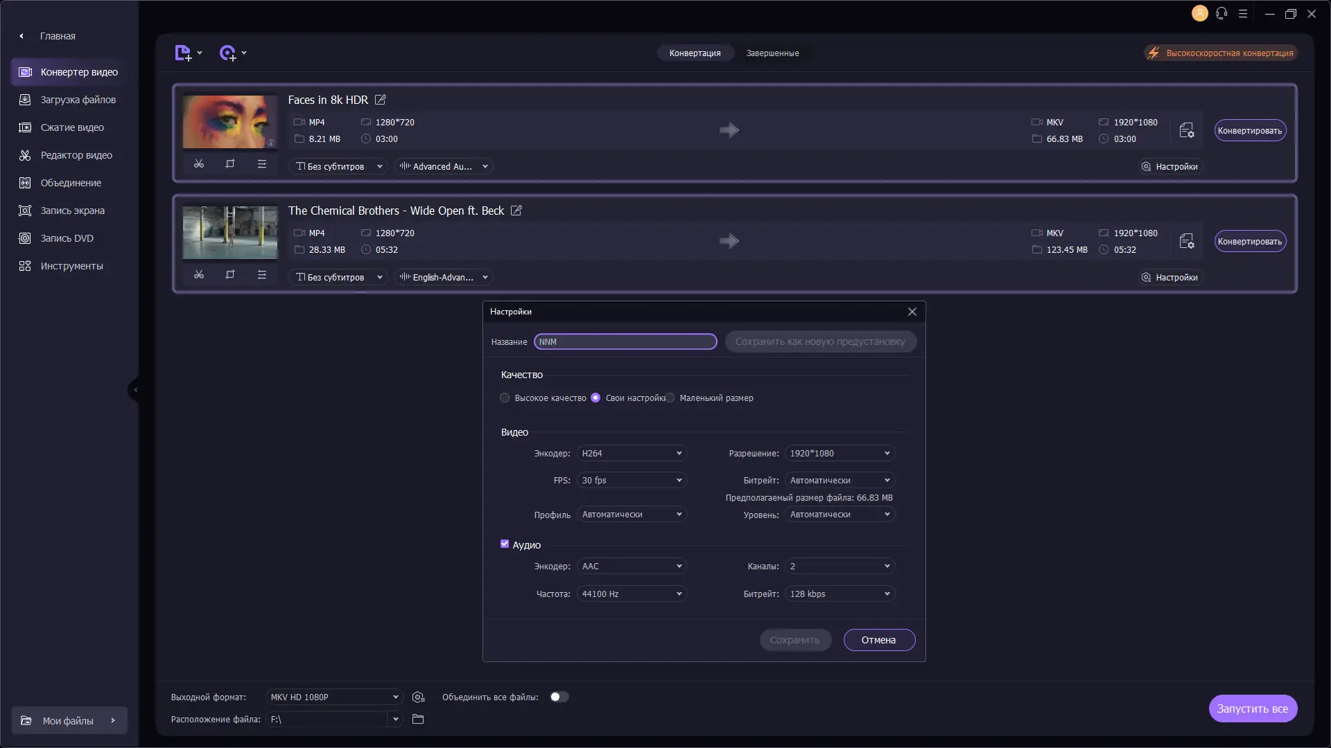 - Высокая скорость конвертации с поддержкой 16-поточной обработки