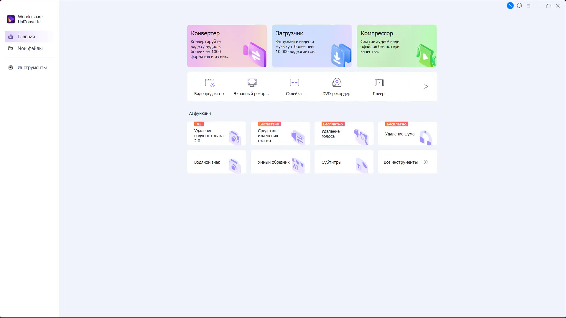 Wondershare UniConverter — универсальный инструмент для конвертации, редактирования и управления видеофайлами в более чем 159 форматах. Программа поддерживает высокоскоростное преобразование с сохранением качества, включая форматы 4K и HEVC/H.265. Благодаря интуитивному интерфейсу и широкому набору функций, она подходит как для новичков, так и для опытных пользователей, работающих с мультимедиа.
