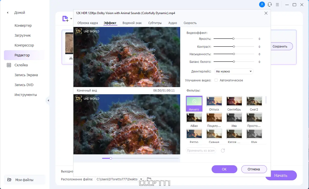 - Поддержка форматов 4K и 8K с возможностью конвертации без потери качества
