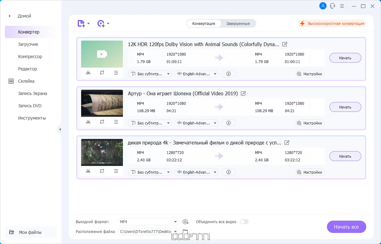 - Поддержка конвертации в 1000 форматов с ускорением до 30 раз