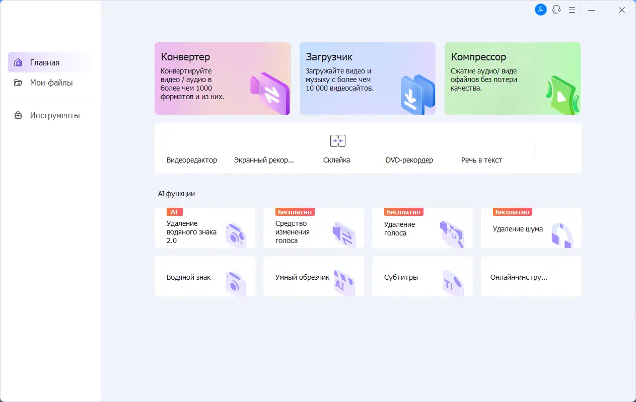 Wondershare UniConverter — многофункциональный инструмент для конвертации, редактирования и управления видео в форматах 4K и HD. Программа поддерживает более 159 форматов, работает с аппаратным ускорением и позволяет конвертировать контент с высокой скоростью без потери качества. Также доступны функции редактирования, захвата экрана, скачивания с YouTube и записи на DVD.