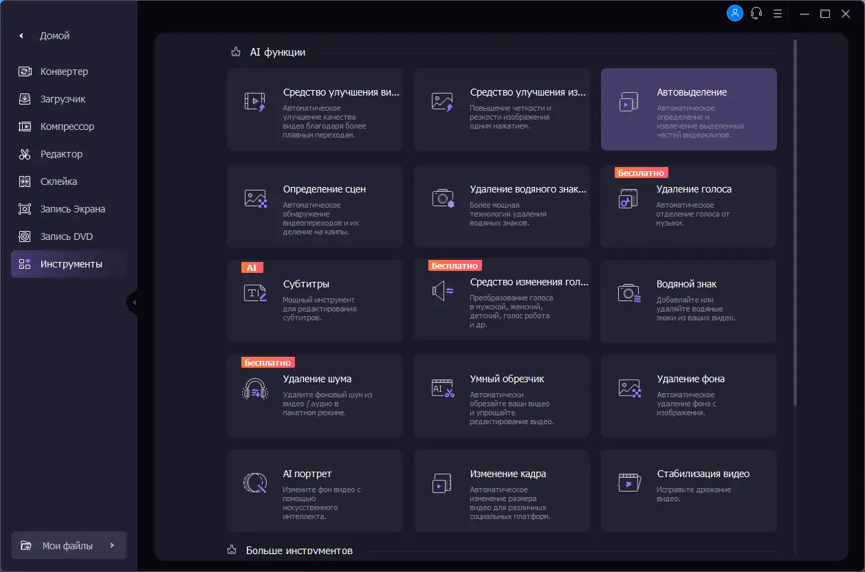 Wondershare UniConverter — это многофункциональное программное обеспечение, объединяющее в себе возможности видеоконвертера, редактора, рекордера, DVD-брендер и инструмент для загрузки видео. Оно позволяет не только конвертировать файлы с высокой скоростью и без потерь, но и оптимизировать их под различные устройства. Поддержка HEVC/H.265 обеспечивает эффективное сжатие, уменьшая объём файлов вдвое при сохранении качества изображения.