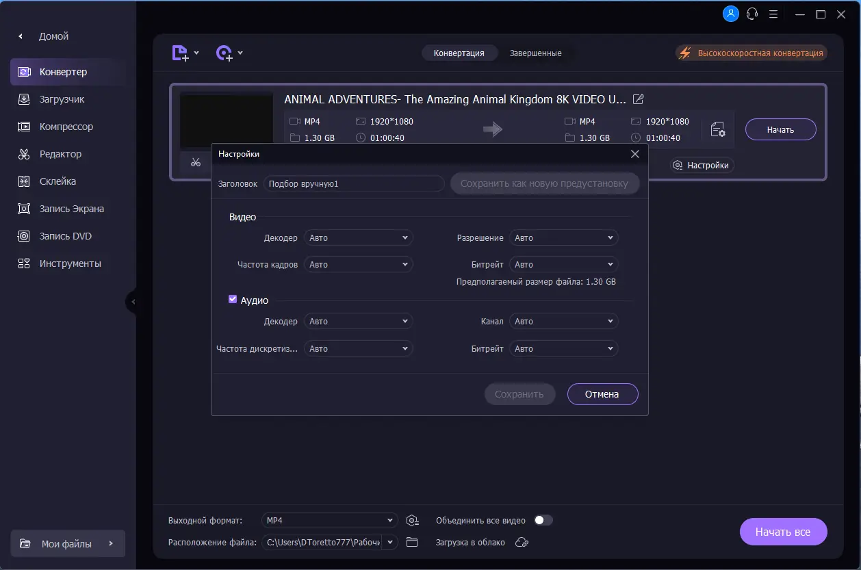 - Высокая скорость конвертации благодаря поддержке GPU и многопоточности