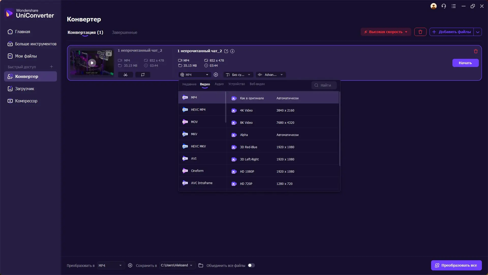 Работа с Wondershare UniConverter