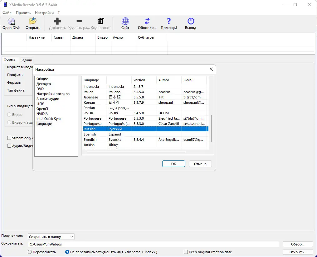Работа с XMedia Recode