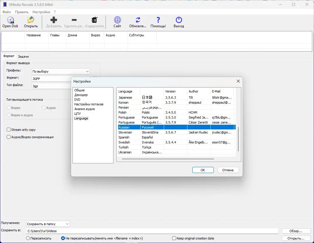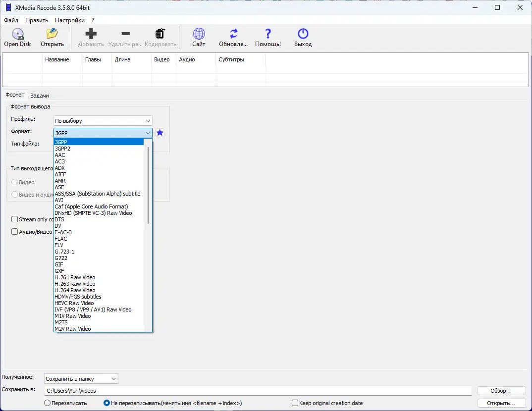 XMedia Recode — это универсальный конвертер медиафайлов, предназначенный для транскодирования видео и аудио в различные форматы с возможностью тонкой настройки выходного потока. Программа поддерживает более сотни форматов, включая устаревшие и современные, такие как H.264, H.265, AV1, WebM и другие. Она подходит как для повседневного использования, так и для профессиональной обработки видеоматериалов.