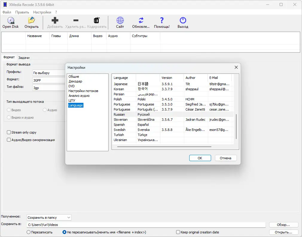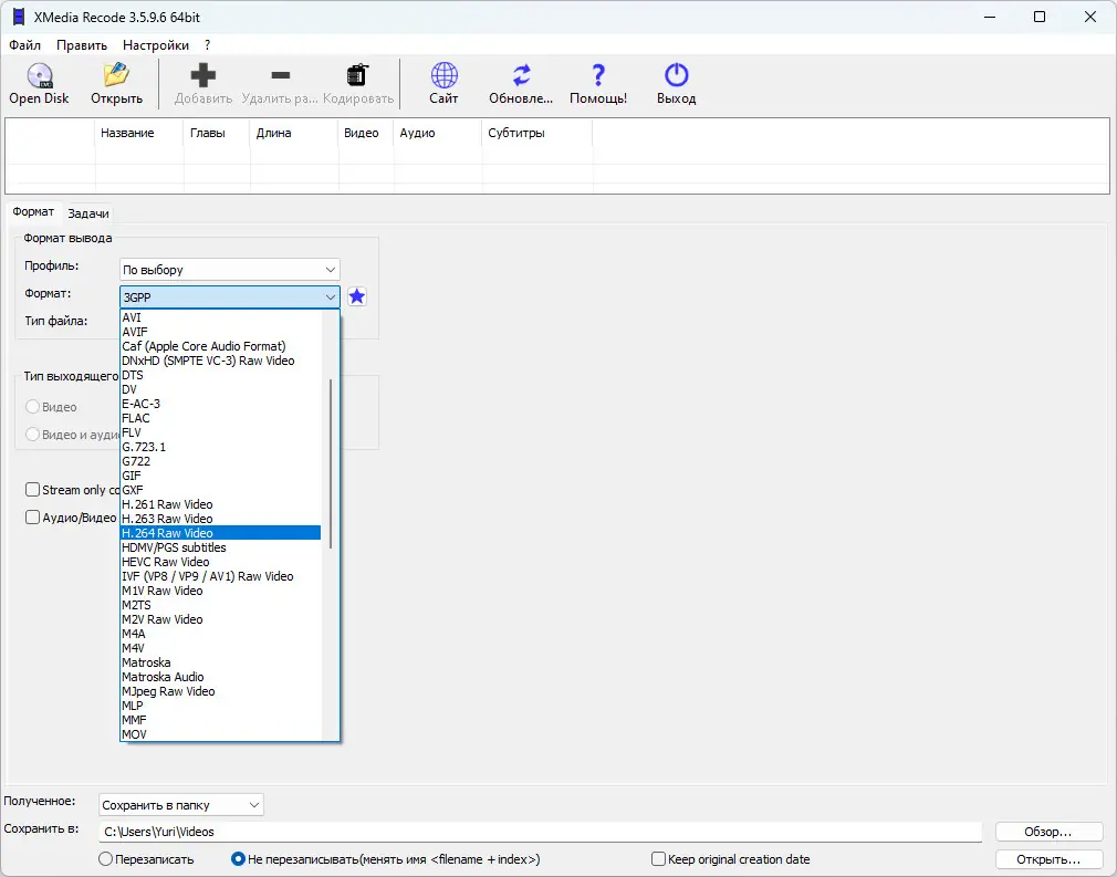Работа с XMedia Recode