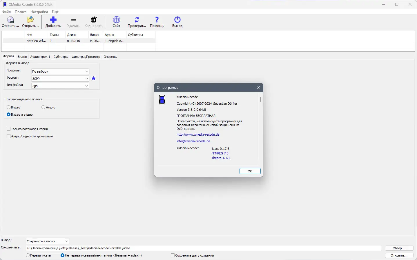 XMedia Recode представляет собой универсальный конвертер мультимедийных файлов, разработанный для эффективного преобразования видео и аудио в форматы, пригодные для воспроизведения на различных устройствах. Программа поддерживает большое количество входных и выходных форматов, включая современные кодеки, что обеспечивает высокую гибкость при работе с медиаконтентом.