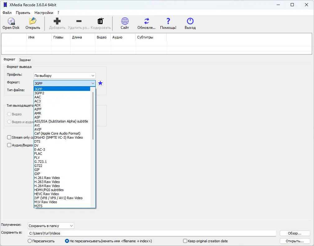 Работа с XMedia Recode