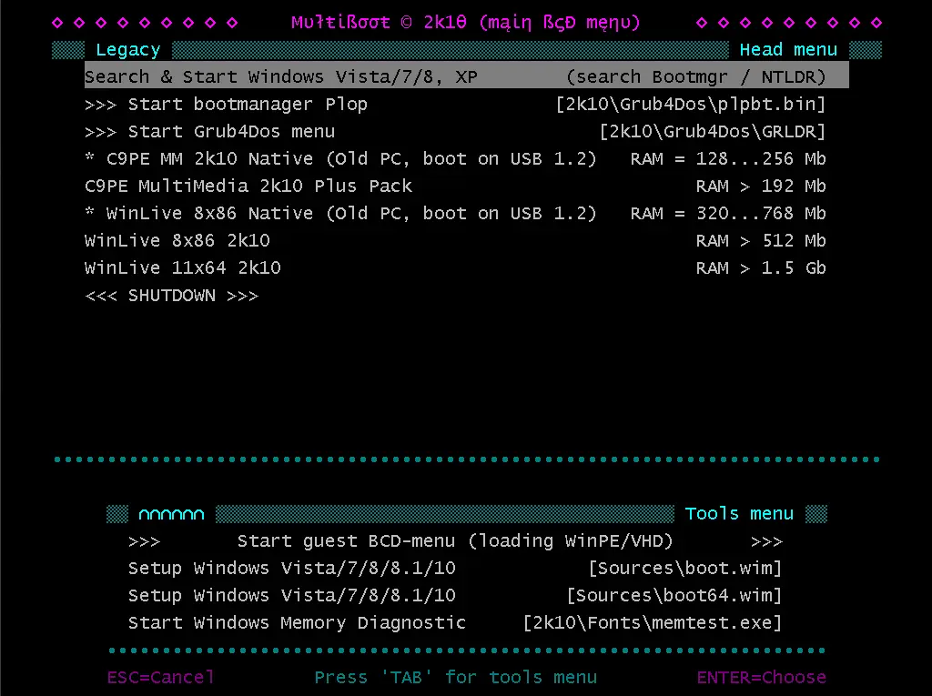 2k10 представляет собой multiboot загрузочный диск, созданный на основе новой линейки 2k10 Live, предназначенный для комплексного обслуживания компьютерного оборудования. Он объединяет в себе несколько PE-ядер, включая версии на базе Windows 2003 Server, WinPE 8×86 и WinPE 11×64, что обеспечивает совместимость с широким спектром устройств — от старых ПК до современных систем с UEFI и SSD-накопителями. Сборка поддерживает как 32-битные, так и 64-битные архитектуры, включая режимы загрузки x64 и x32 через UEFI, что делает её незаменимой при работе с различными конфигурациями.