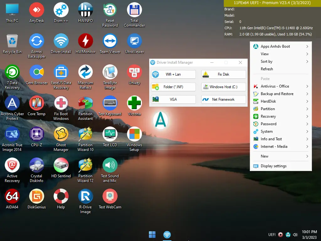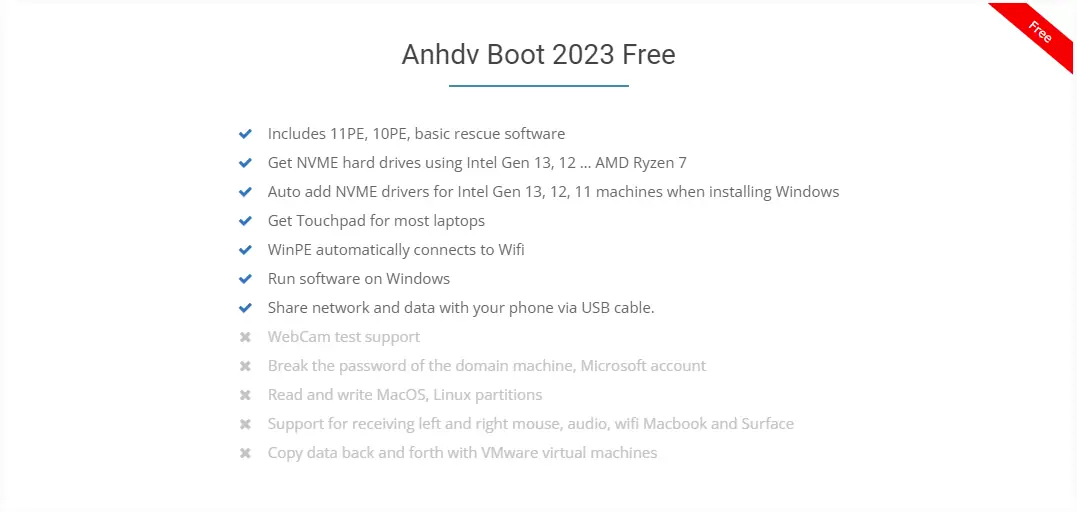Anhdv Boot — это универсальный загрузочный инструмент для диагностики, восстановления и обслуживания компьютеров, работающий в средах Mini Windows 11, Windows 10, Win8PE и Mini XP. Программа включает более 150 утилит для WinPE и DOS, поддерживает UEFI и Legacy, позволяет восстанавливать данные, управлять разделами, сканировать на вирусы и устанавливать Windows. Версия 2024 v 24.0 premium обеспечивает расширенные функции, включая работу с Bitlocker, удалённое управление и поддержку современных процессоров.