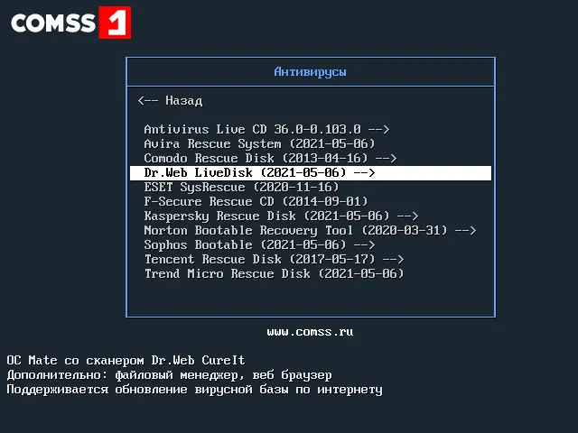 COMSS Boot USB — это универсальная загрузочная флешка на базе Live-системы, объединяющая 11 антивирусных сканеров и более 40 инструментов для диагностики, восстановления и обслуживания компьютеров. Она предназначена для безопасного анализа заражённых систем, проверки аппаратной части, восстановления данных и работы с дисками без загрузки основной операционной системы. Поддерживает режимы Legacy и UEFI, содержит только свободное программное обеспечение и регулярно обновляется.