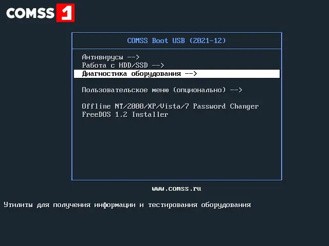 COMSS Boot USB — это универсальная загрузочная флешка, объединяющая 11 антивирусных решений и более 40 инструментов для диагностики, восстановления и обслуживания компьютеров. Она позволяет проводить комплексное сканирование системы на вирусы, проверять состояние жестких дисков, оперативной памяти, а также работать с разделами и снимать пароли с Windows. Все компоненты основаны на свободно распространяемом ПО, что делает решение доступным и надежным для технического обслуживания.