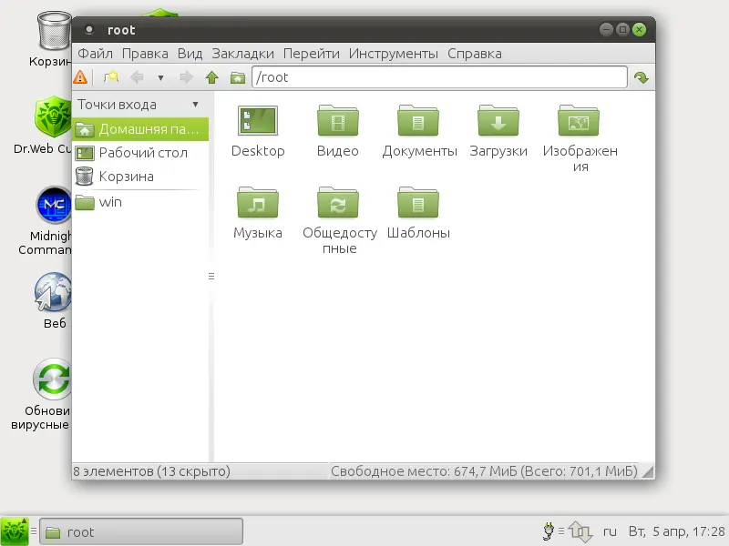 - Содержит набор вспомогательных утилит: файловые менеджеры, терминал, браузер и настройки сети