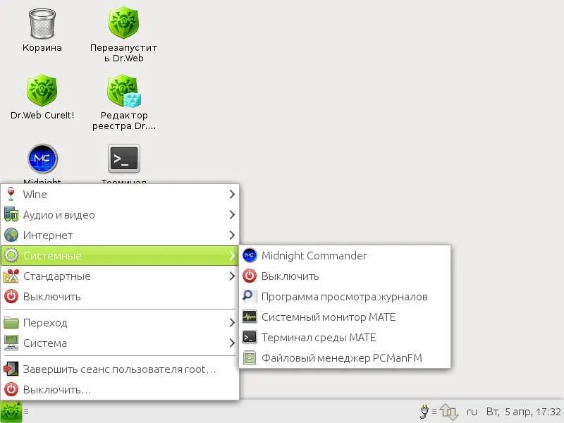 - Доступны файловые менеджеры — графический и консольный — для работы с дисками и папками
