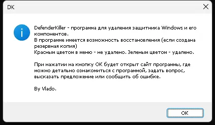 DefenderKiller — утилита для полного удаления компонентов Windows Defender из операционной системы. Инструмент подходит для пользователей, стремящихся освободить системные ресурсы и отключить встроенный антивирус без последствий для стабильности Windows. Программа работает на всех актуальных версиях ОС, включая 32- и 64-битные сборки, начиная с Windows 7.