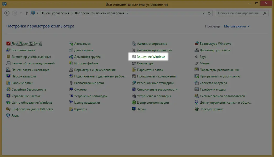 - Полная деинсталляция всех элементов Защитника Windows