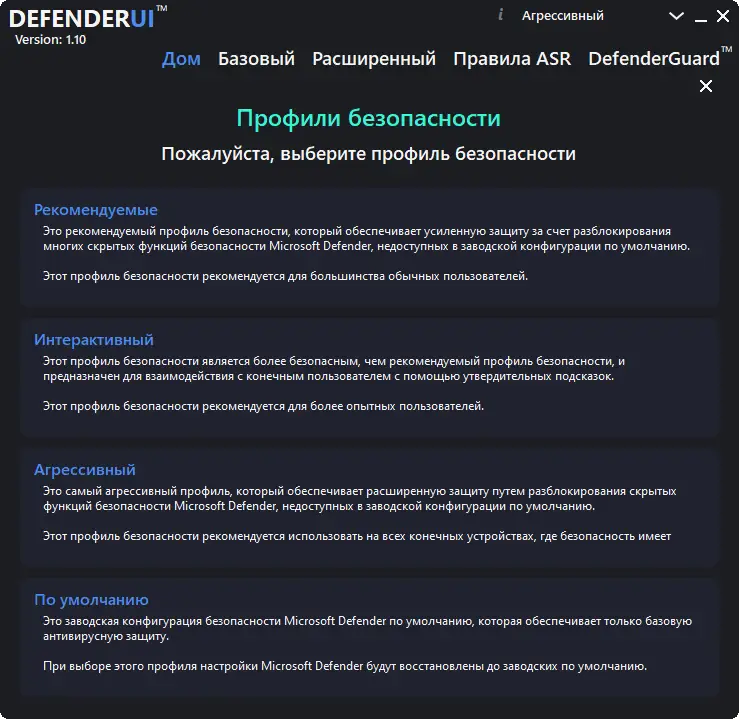 - Включает четыре предустановленных профиля безопасности для быстрой настройки