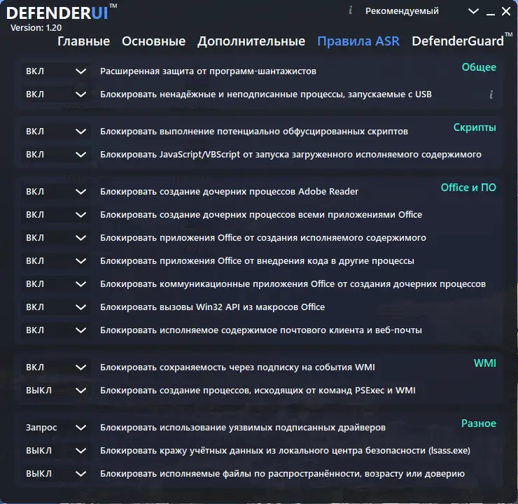 DefenderUI разработана как инструмент для пользователей, стремящихся получить полный контроль над защитой своей операционной системы. Вместо того чтобы переходить между разделами «Безопасность Windows», реестром и редактором локальных групповых политик, пользователь получает единый интерфейс, объединяющий все ключевые настройки. Это особенно полезно для тех, кто хочет быстро изменить уровень безопасности без необходимости глубокого погружения в системные параметры.