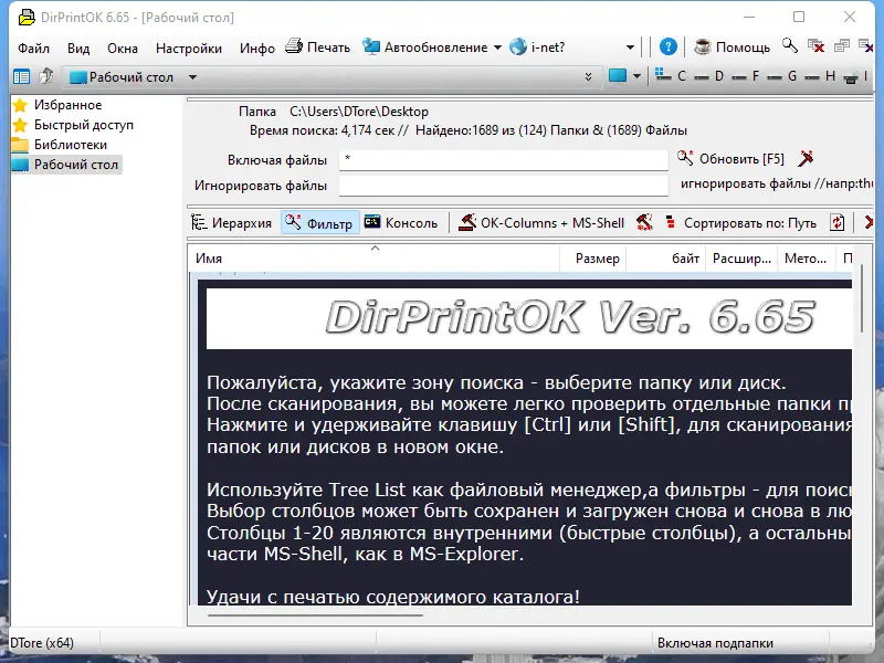 Фильтр в DirPrintOK позволяет как включать, так и исключать определённые типы файлов, обеспечивая точный контроль над тем, что будет напечатано.