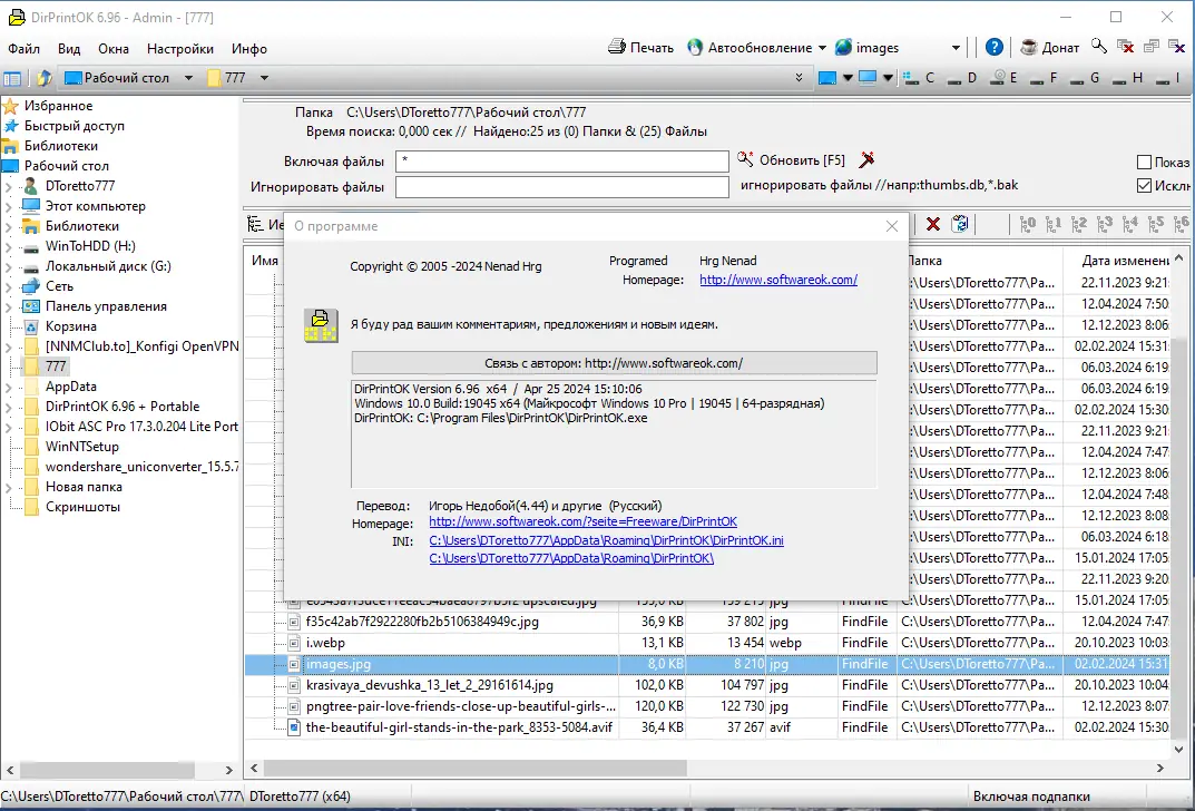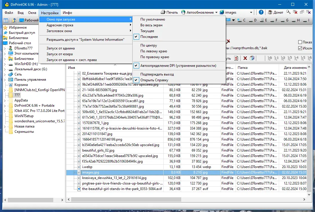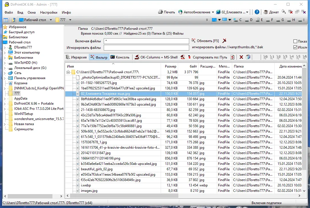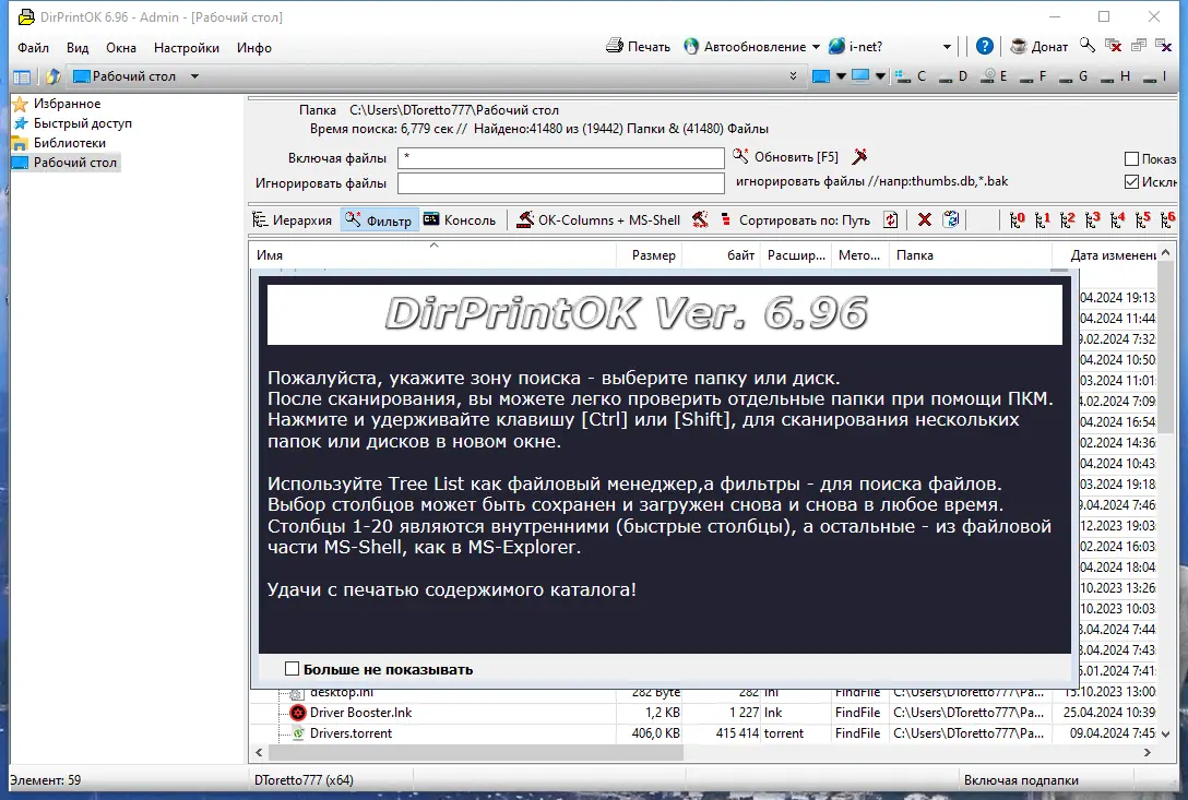 DirPrintOK сочетает простоту интерфейса с расширенными возможностями фильтрации и вывода данных, оставаясь при этом крайне лёгкой в использовании.
